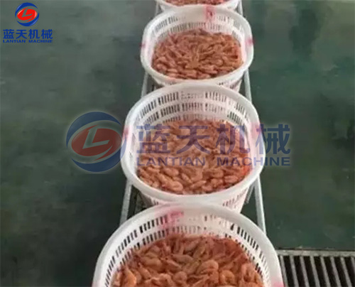 去掉泥沙雜質(zhì)后,把準(zhǔn)備好的海蝦及時(shí)進(jìn)行水煮或蒸制,撒入占海蝦重量6~8%的食鹽,蒸制時(shí)間以蝦顏色由青白轉(zhuǎn)紅即可,這時(shí)的海蝦也比較容易脫殼。