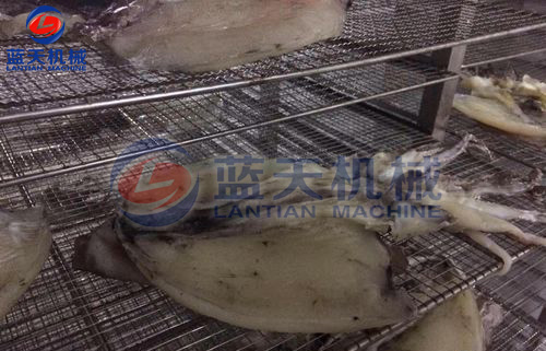 由于魷魚墨魚不僅水分大,而且水分存在于脂肪和油脂中,脫水就比其他類別的物料要更困難,而控制其脫水速度和排濕量是決定魷魚烘干質(zhì)量的重要因素之一,脫水速度和排濕量的掌握對(duì)保持海產(chǎn)品烘干后的色澤尤為重要。魷魚墨魚烘干要避免水汽在魷魚體表停留,排濕不暢,而導(dǎo)致細(xì)菌滋生。