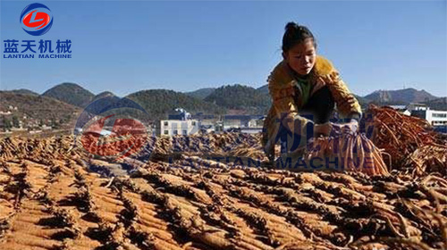 黨參曬至根條發(fā)軟,折彎不斷時(shí),趁熱在地方順勢(shì)旋轉(zhuǎn)揉搓3-5分鐘,使根條更柔軟,并脫除部分根毛、泥土、就地繼續(xù)晾曬。倒胚后,曬至根條溫?zé)?30-40度),然后上堆,覆蓋塑料膜繼續(xù)悶曬,提高根條溫度及柔軟程度。
