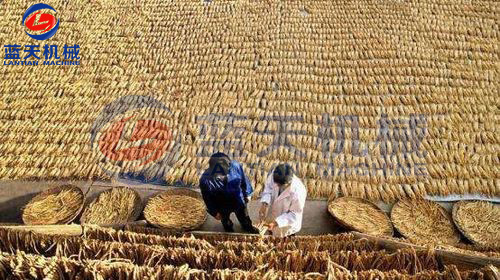 推進(jìn)黨參烘干房?jī)?nèi)進(jìn)行烘制。將搓理?xiàng)l后的黨參、均勻鋪放于竹簾內(nèi),分層擺放,蘆頭部分蓋前排的尾須部分,呈覆瓦狀,以便頭尾干燥均勻,保持40-50攝氏度進(jìn)行烘干。