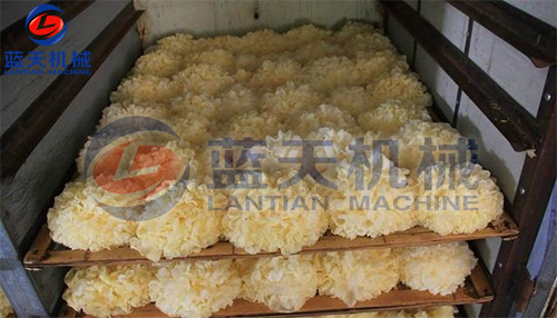 如果銀耳采收的時候天氣睛好,藍天機械強烈建議您采用日曬與銀耳烘干機兩者相結(jié)合,這樣制作出來的干銀耳香氣高,品相好,同時烘干成本更好。