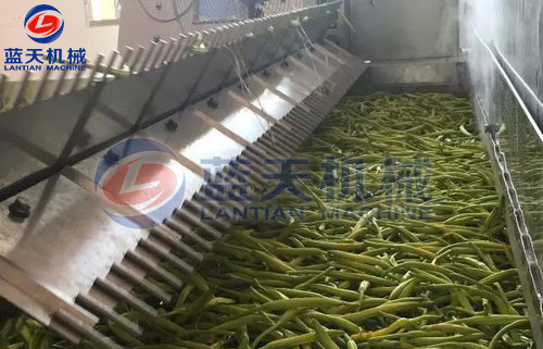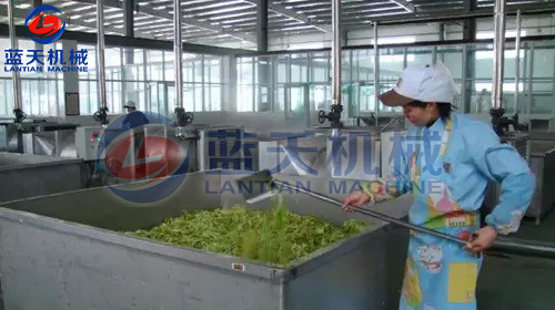 將洗干凈的原料根據(jù)產(chǎn)品要求分別切成片、絲、條等形狀。預(yù)煮時(shí),因原料不同而異,易煮透的放沸水中焯熟,不易煮透的放沸水(水溫一般在150℃以上)中略煮片刻,一般燙漂時(shí)間為2~4分鐘。葉菜類最好不燙漂處理。