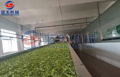 預(yù)煮處理后的蔬菜應(yīng)立即進(jìn)行冷卻(一般采用冷水沖淋),使其迅速降至常溫。冷卻后,為縮短烘干時(shí)間,可用離心機(jī)甩水,也可用簡易手工方法壓瀝,待水瀝盡后,就可攤開稍加涼曬,以備裝盤烘烤。