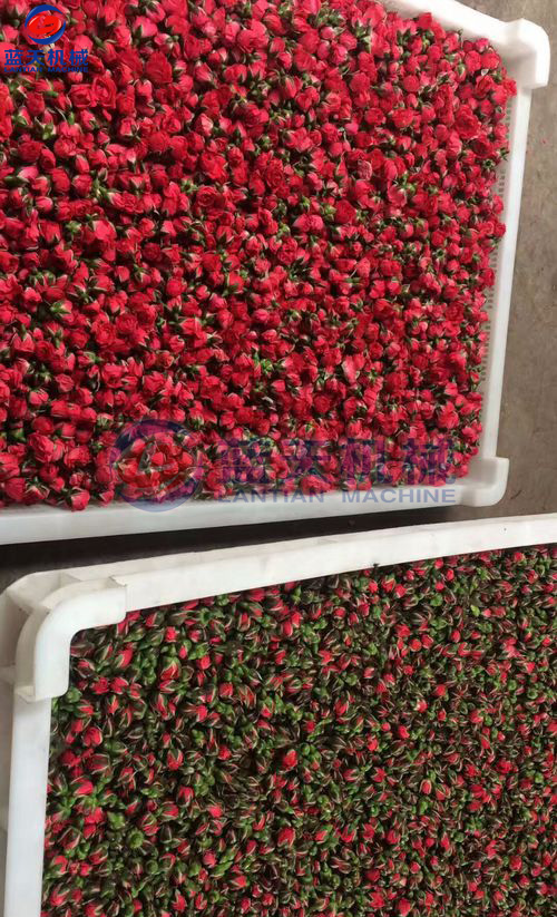 玫瑰花的商品花分為花苞和鮮花,在烘干工藝的程序上有所不同,下面我們結(jié)合實際的現(xiàn)場情況做一次整個工藝流程的介紹。