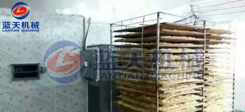 黃姜的烘干單批次重量較大,一般清洗后采用切片機進(jìn)行切片,厚度在3-5毫米左右,然后裝入物料盤,推入烘干房,2臺12P主機配11.5米長4米寬2.2米高烘干房每次進(jìn)物料車18臺,每臺可以放黃姜片300斤,總共一批次可以放入5400斤新鮮黃姜片,黃姜片含水量較大,系統(tǒng)需要每邊配置2臺新風(fēng)閥,溫度從55開始進(jìn)行提升,每批次烘干總耗時22小時,每小時用電30度,總用電660度,按照每度電1元計算,每斤新鮮黃姜片的烘干成本是0.12元。