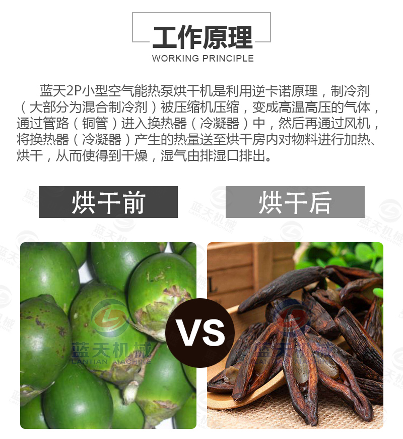 1、采用熱泵檳榔烘干機(jī)對(duì)檳榔進(jìn)行烘干處理,烘干過程能耗低,有效減少運(yùn)行成本。