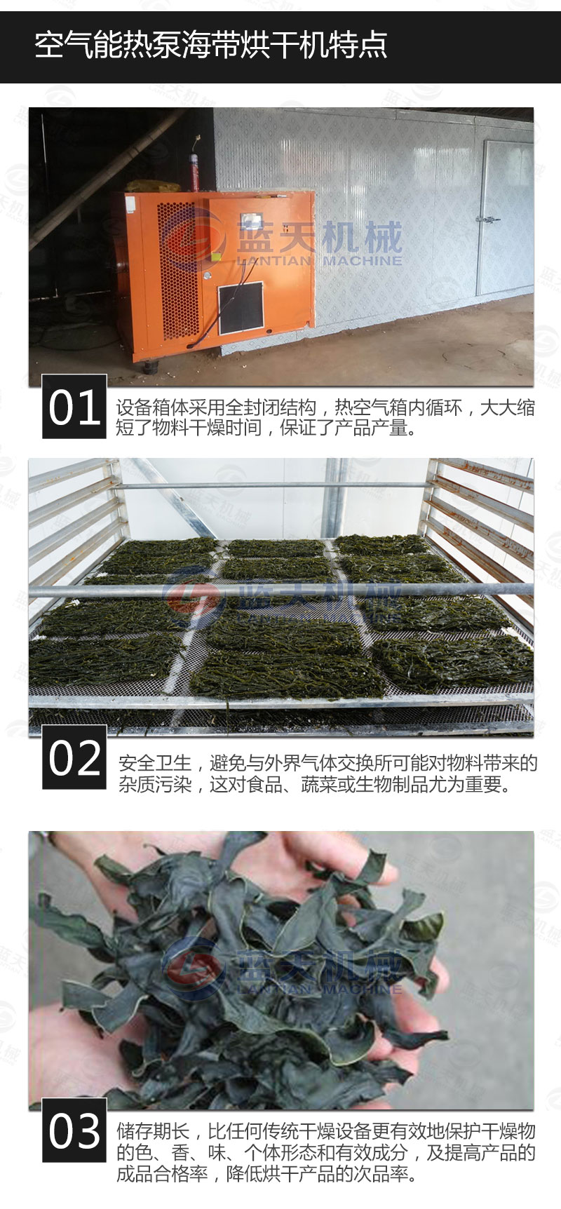 3、烘干時(shí)間—海帶烘干一般周期比較長(zhǎng),快速烘干一般都會(huì)破壞烘干質(zhì)量;