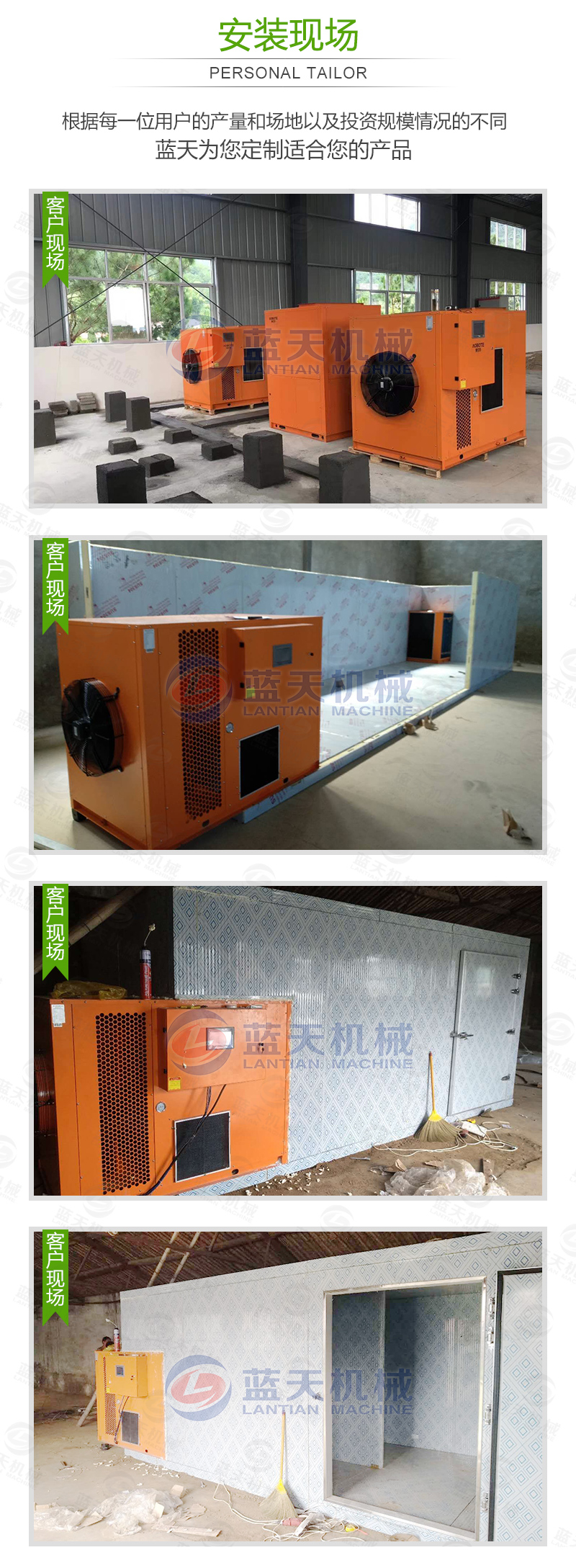 二、殺青后的黃花菜整體變軟,可以放入物料車,推進黃花菜烘干機內進行烘干作業(yè)。這里說的黃花菜烘干機是指空氣源熱泵烘干機,是一種利用吸收空氣熱量進行轉移搬運的新能源環(huán)保設備,加工出的黃花菜不含硫,品質好。如果量大的用戶,可以選擇大型黃花菜烘干設備,也就是網(wǎng)帶式黃花菜烘干機。當然,黃花菜烘干機價格會因為機型有差異,這個也是很正常的,符合常理。