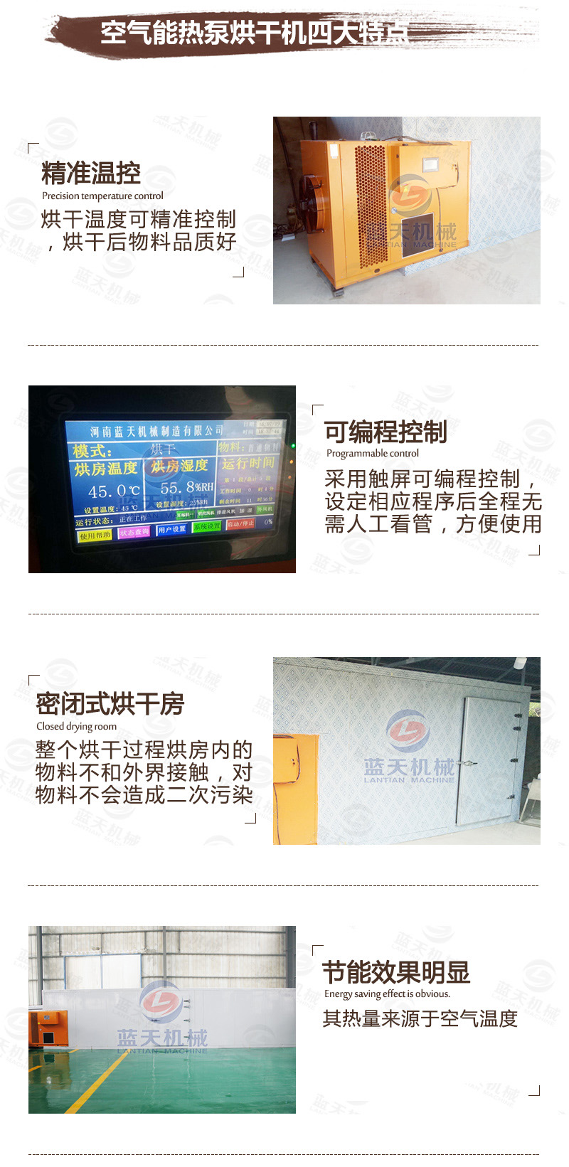 使用藥材烘干機能夠有效的保障被烘干干燥藥材的品質(zhì),顏色、外觀形態(tài)和有效成分均能得到妥善的保護;藥材烘干房烘干過程中不會對藥材及環(huán)境造成污染、沒有廢水、廢氣、廢渣排出,環(huán)保節(jié)能;藥材烘干房采用全自動溫度控制,操作簡單,可全天候24小時工作,不用專職人員看守;能耗低,保障物料烘干品質(zhì)的同時,藥材烘干機設(shè)備價格大幅度減少烘干的成本,經(jīng)濟性好。