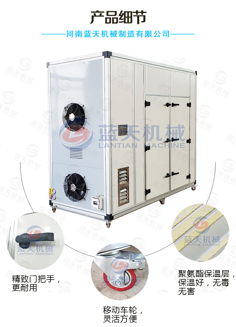 (1)能耗費(fèi)用低——野生蘑菇烘干機(jī)采用加熱模式是熱泵空氣能,烘干機(jī)在運(yùn)行中能回收外界環(huán)境中濕熱空氣的顯熱和潛熱,能量得到足夠而合理利用,是一種公認(rèn)的效率高節(jié)能設(shè)備。比傳統(tǒng)的柴油鍋爐干燥房、電熱烘干房,煤鍋爐都節(jié)能。