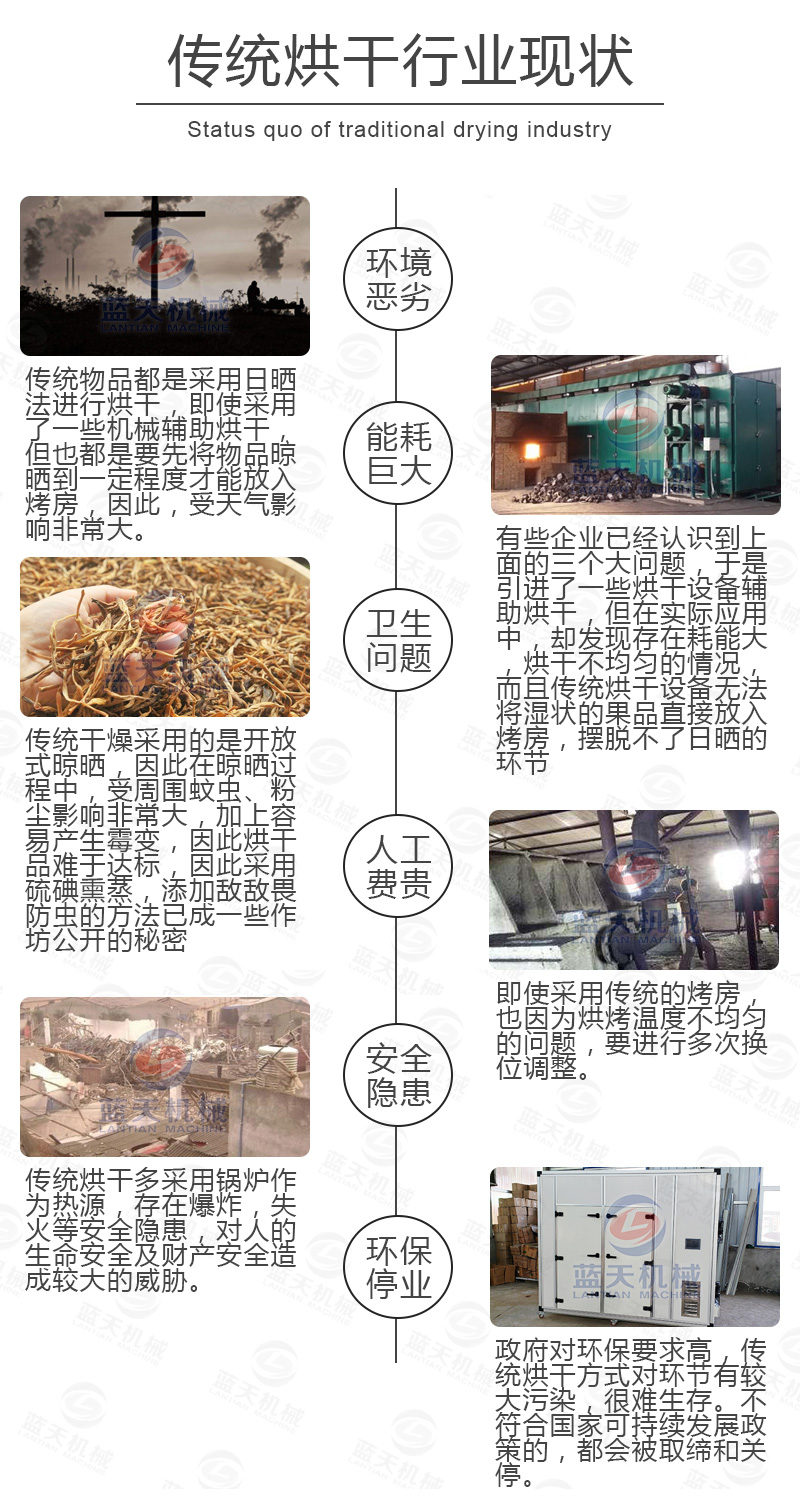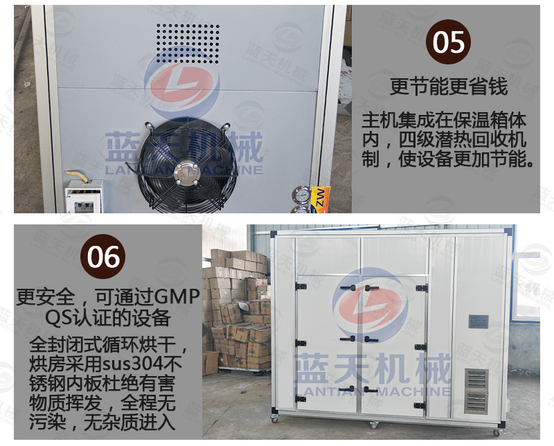 (7)設(shè)備運(yùn)行沒(méi)有三廢的排放,不需要鍋爐或者燒煤燒柴,設(shè)備主要是吸收空氣中熱量對(duì)物料進(jìn)行烘干,真正實(shí)現(xiàn)節(jié)能生產(chǎn)。