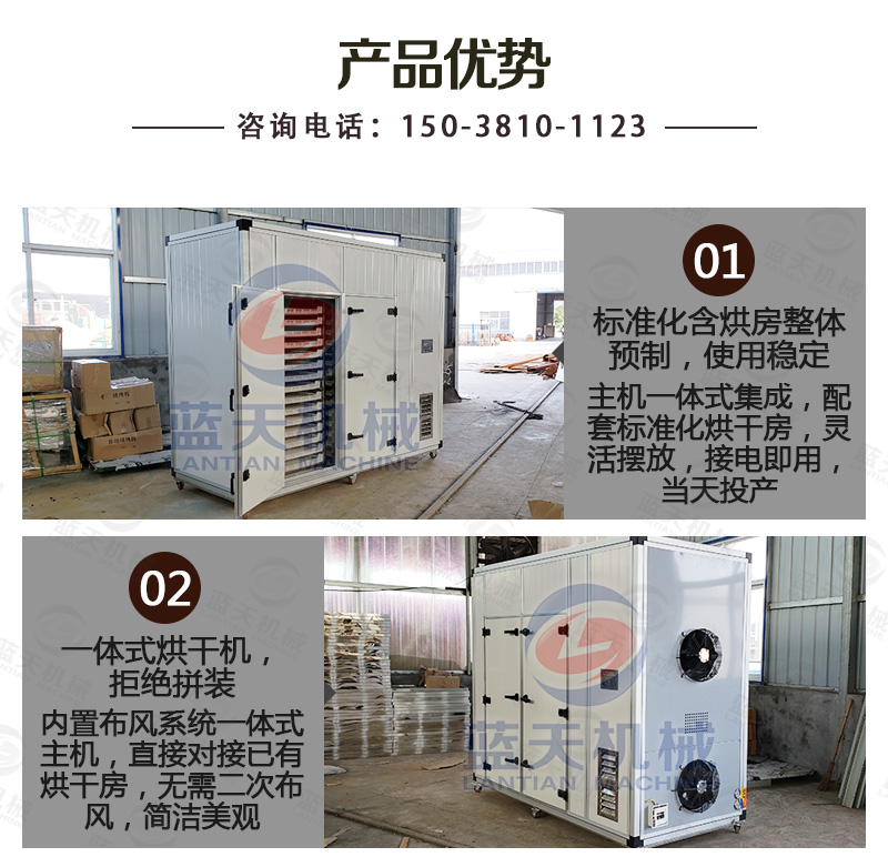 (6)先進(jìn)的合理的烤房結(jié)構(gòu),合理的熱風(fēng)循環(huán)系統(tǒng),保證烘干機(jī)內(nèi)的每處受熱都均勻,品質(zhì)一樣的好